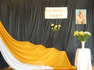 Uroczysta akademia, którą przygotowała katechetka Pani Krystyna Kaliszewska wraz z członkami Koła Misyjnego i Scholii przybliżyła postać Jana Pawła II i była okazją do wspólnej modlitwy. Na koniec uroczystości wszyscy obecni jak jedna wielka rodzina, trzymając się za ręce odśpiewali piosenkę pt. ,,Barka"