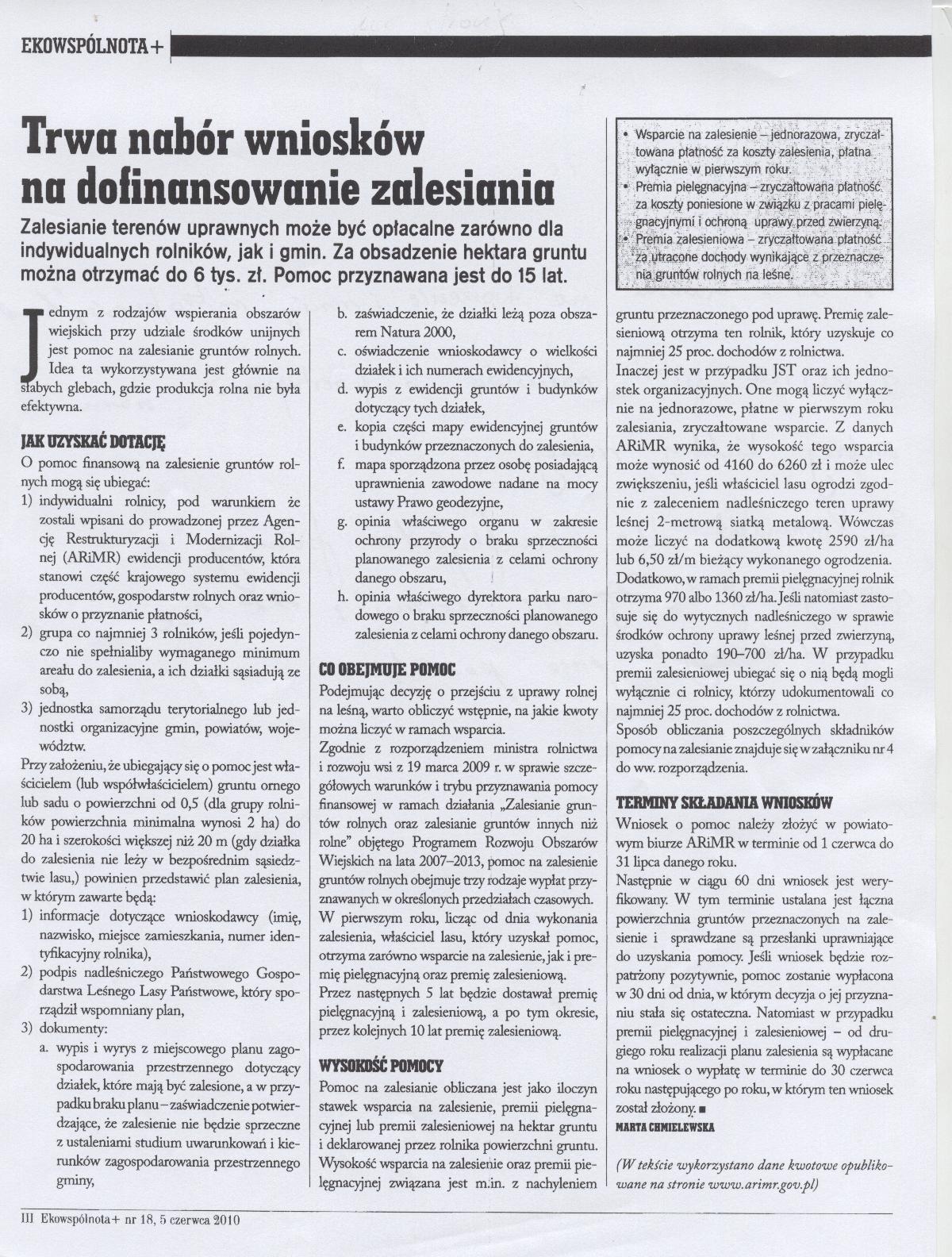 31 lipca upływa termin przyjmowania przez Biura Powiatowe ARiMR wniosków od rolników, którzy po raz pierwszy ubiegają się o pomoc na zalesienie gruntów rolnych oraz gruntów innych niz rolne