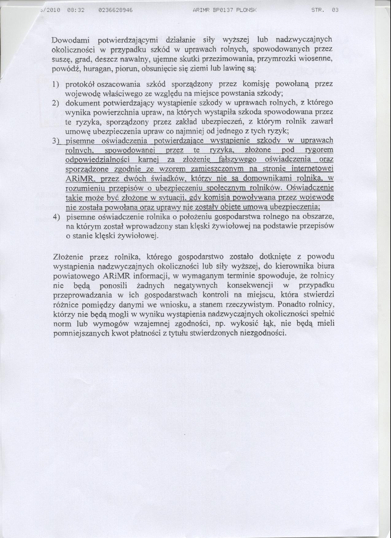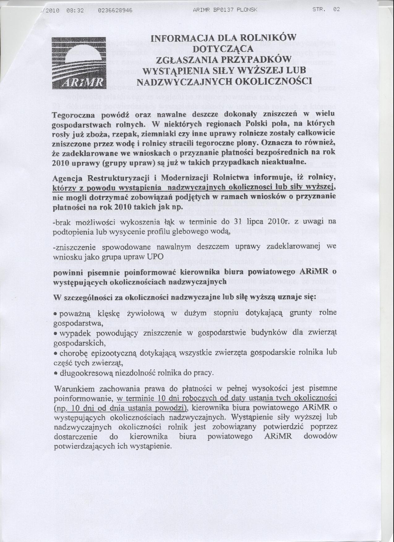 W związku z występującymi podtopieniami i zalewaniem gruntów rolnych Biuro Powiatowe ARiMR w Płońsku informuje o konieczności zgłaszania przez rolników przypadków wystąpienia siły wyższej lub nadzwyczajnych okoliczności