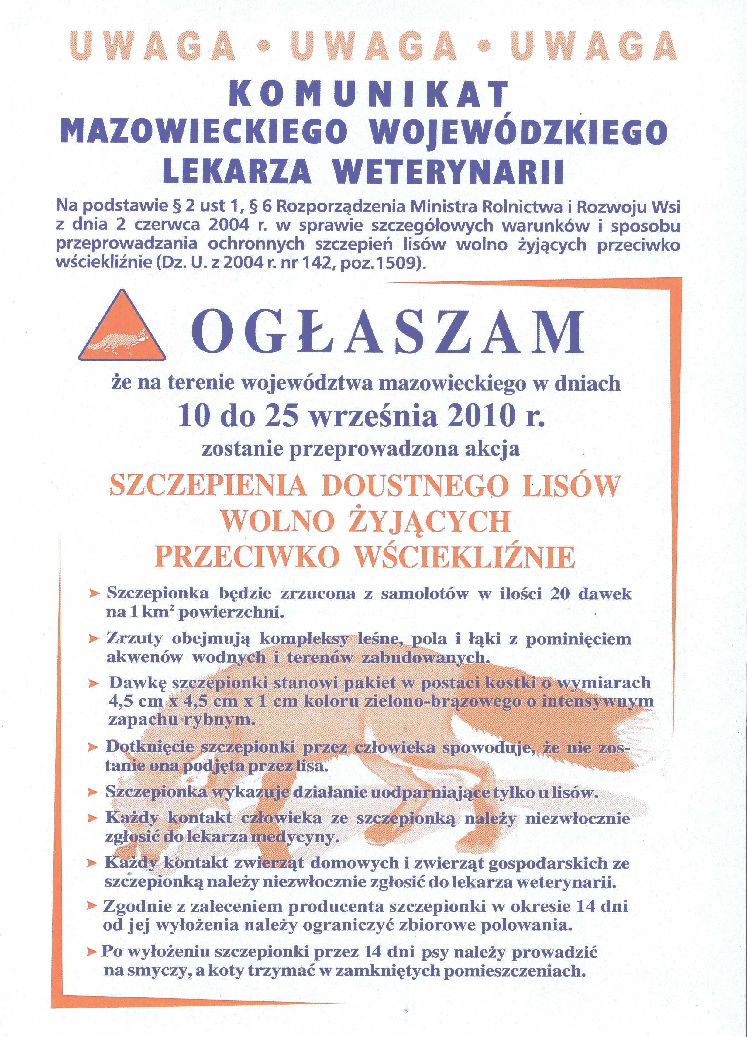 Komunikat Mazowieckiego Wojewódzkiego Lekarza Weterynarii